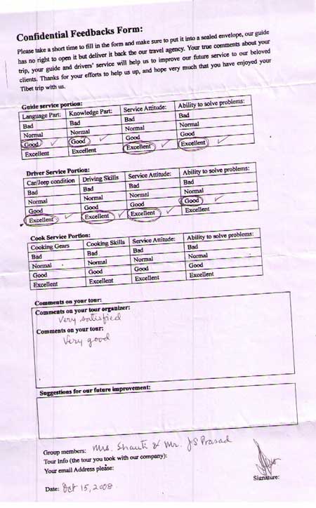 These feedback letters were provided by our guests who traveled with us before April 2012. Please get more Tibet travel reference from the Tibet travel reviews 2013 , 2014 , 2015, Latest 2016, 2017 as on Trip Advisor, 2018 as on Trip Advisor