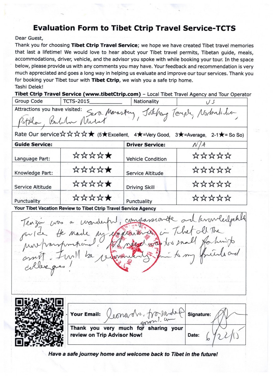 Travelers Name: Diwen and William (read the Tibet travel agency review 2015)
