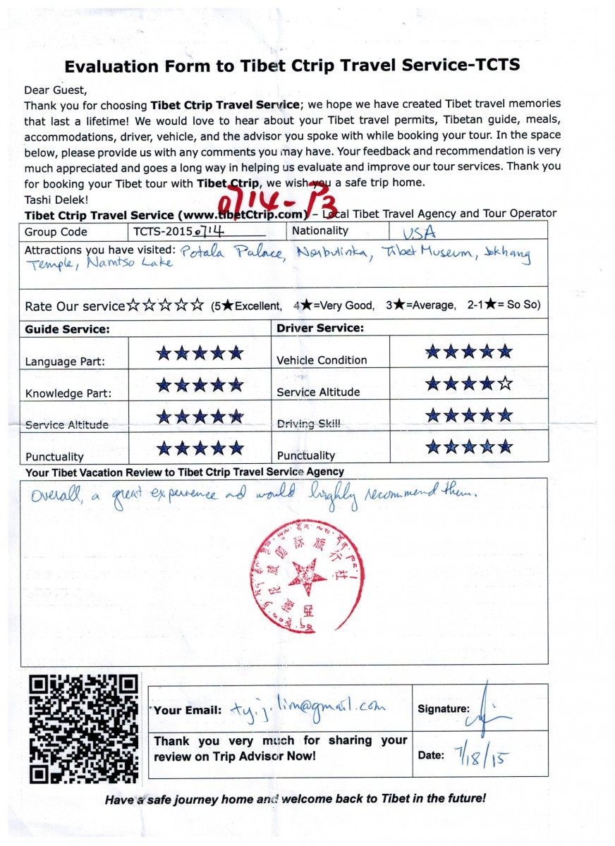 Group Code: TCTS20150714--3 people (TCTS is short for Tibet Ctrip Travel Service)