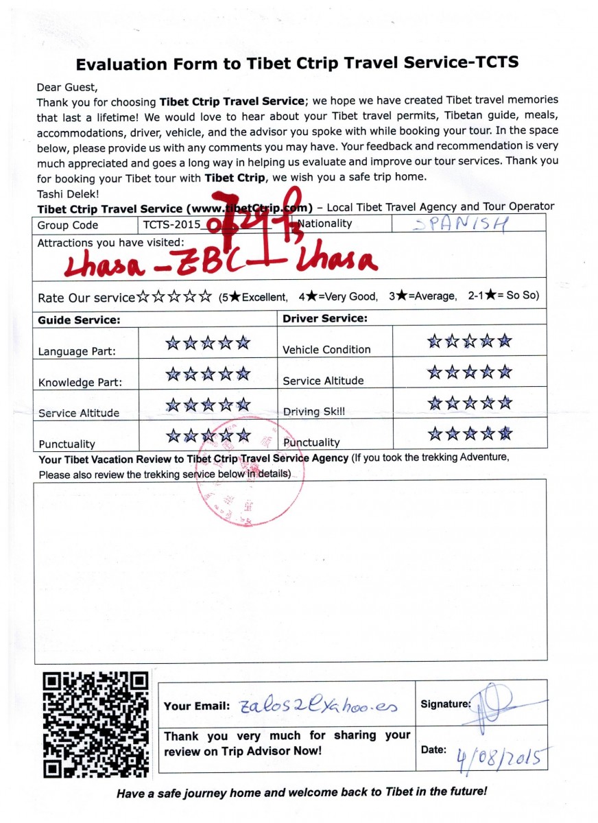 Tibet Ctrip Travel Service arranged our Tibet entry permits supper fast. I am sure no other agency can get permits in such a short time. We booked our Tibet vacation just 4-5 days in advance and they helped us adjust our tour itinerary to include Everest Base Camp adventure after our arrival. We explored Tibet with TCTS in such a short time but it was quite worthy to travel Tibet. Thanks very much again for a wonderful trip!