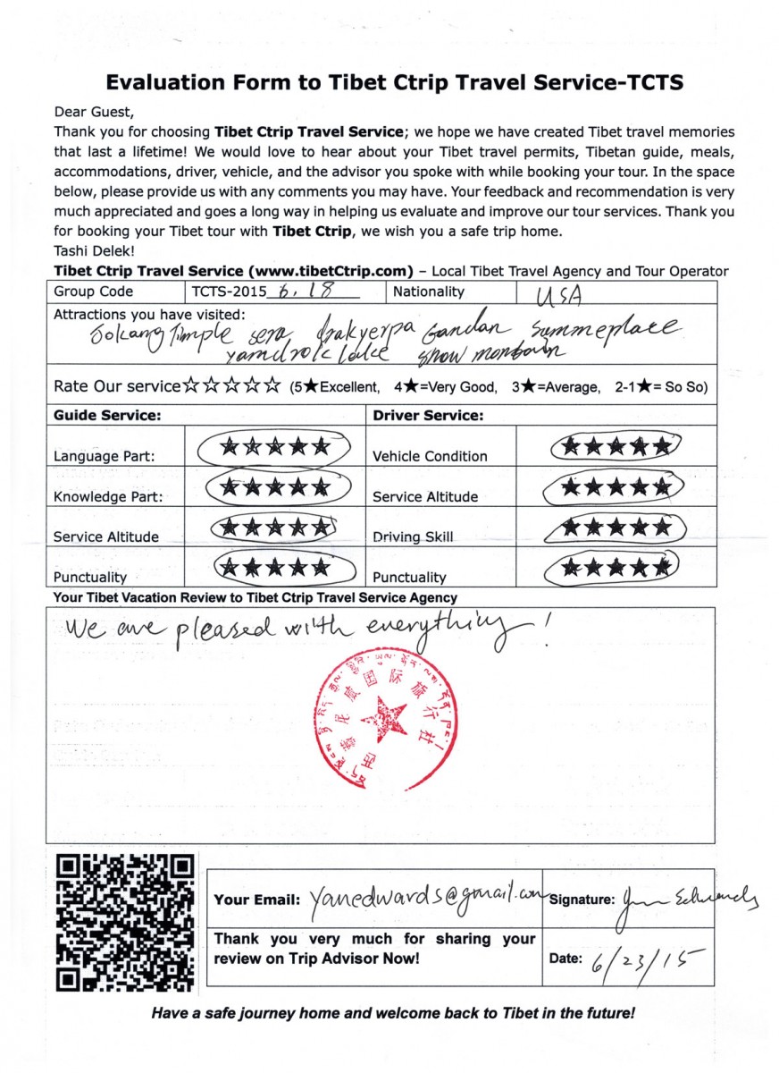 Travelers Name: Yan Yan Family (read the Tibet family travel review 2015)