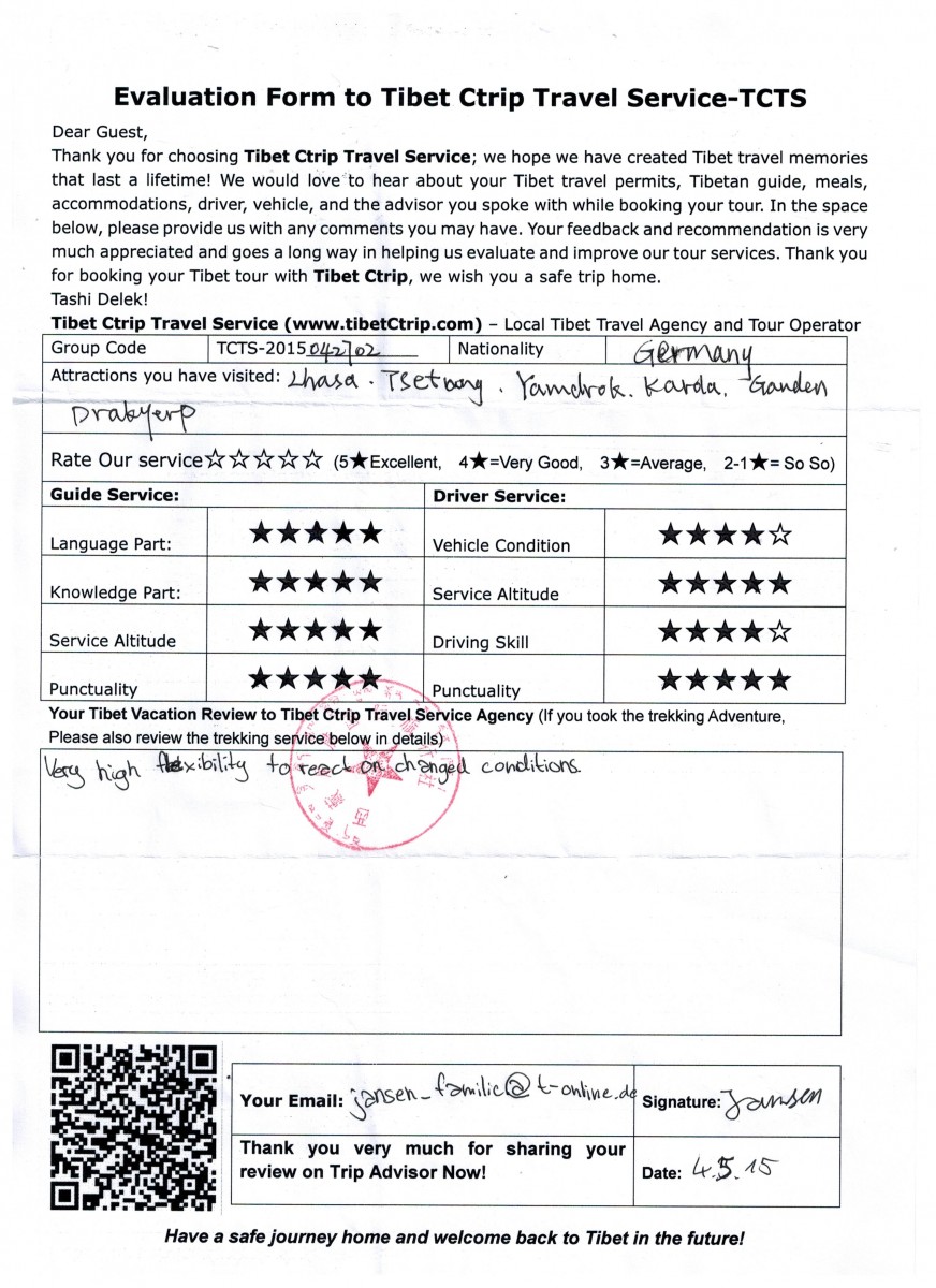 Group Code: TCTS20150427 (TCTS is short for Tibet Ctrip Travel Service)