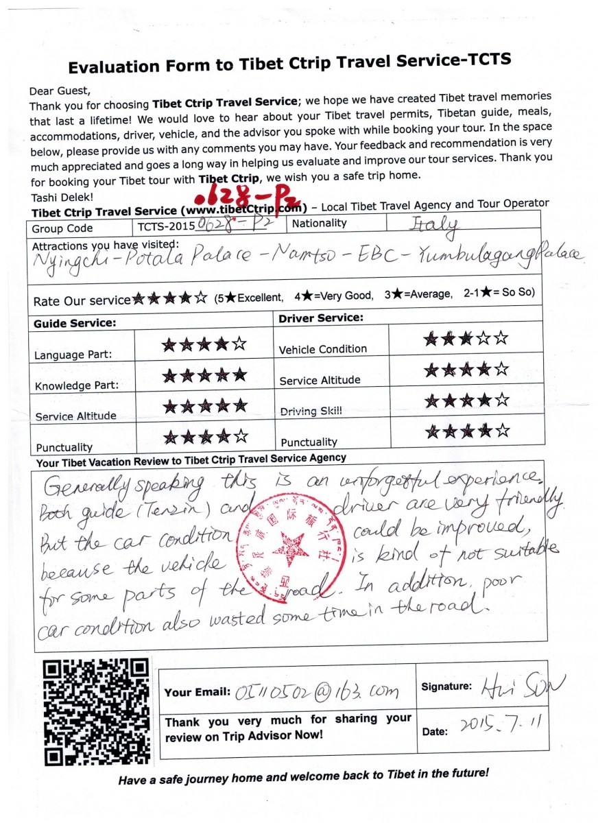 Travelers Name: Miss Sun Hui and Mr. Juan Bautista Simoni (read the Tibet Ctrip travel agency review 2015)
