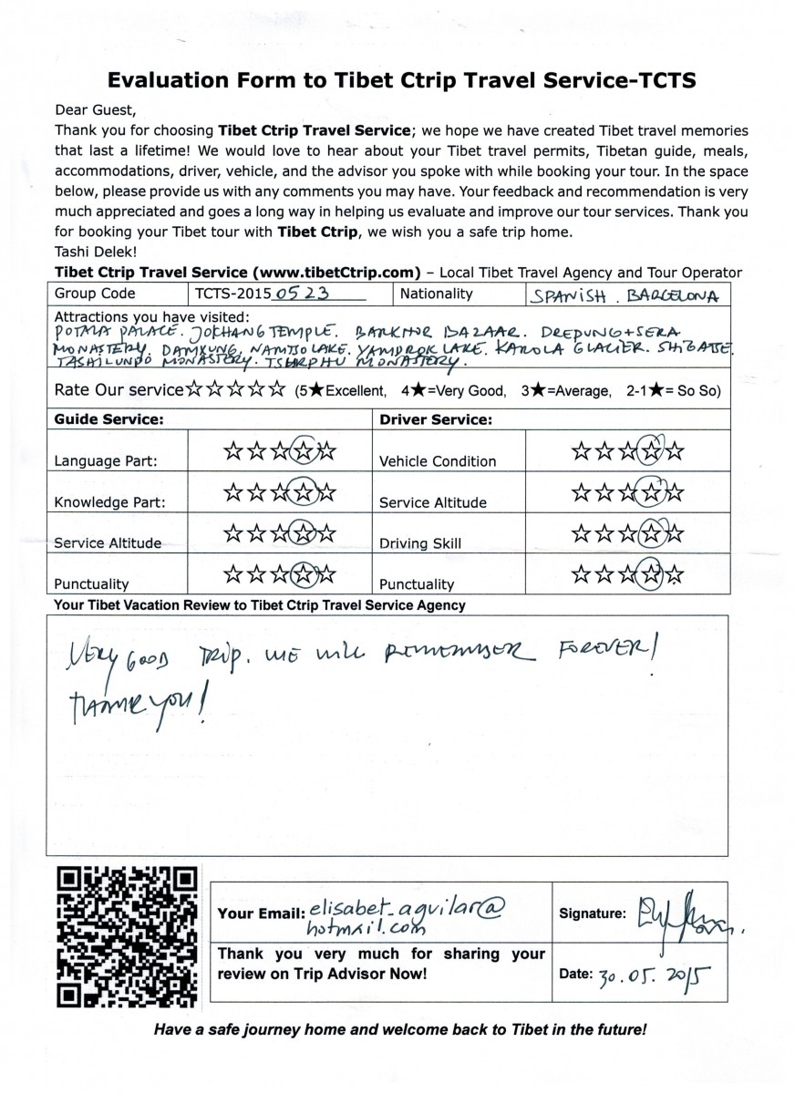 Travelers Name: Antonia, Maria and Elisabet (read the Tibet travel review 2015)