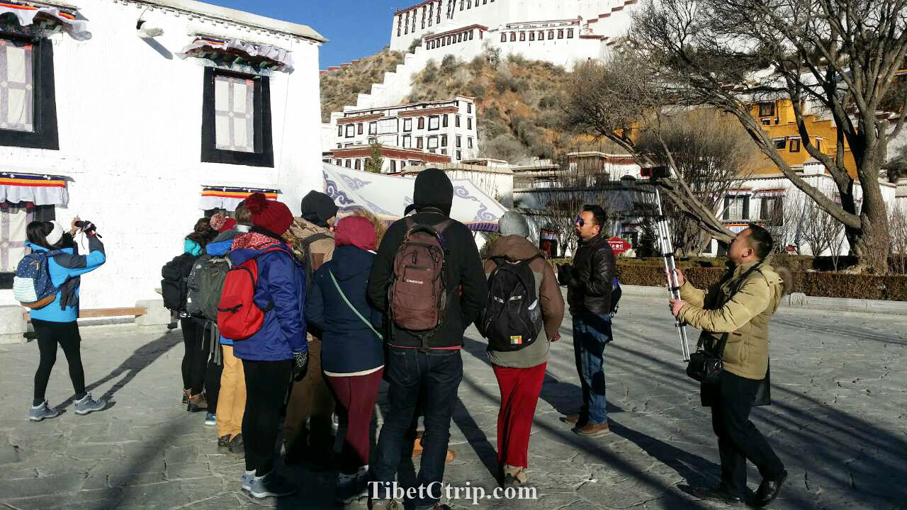 Lhasa (B+D)Attractions: Potala Palace, Jokhang Temple, Barkhor Street Today is the most classic day tour of Lhasa city. We may not see these sites by the exactly same order below because at summer times Potala Palace has designated visiting hours. Potala Palace sits on the 130m-high Marpo Ri (Red Hill) in the centre of Lhasa city. The fortress like Potala Palace is a structure of massive proportions -- 400 meters east-west and 350 meters north-south, with 13 stories containing over 1,000 rooms, 10,000 shrines and about 200,000 statues. Jokhang Temple is widely considered the most sacred and important temple in Tibet, situated in Barkhor Square of Lhasa Old Town, spreading over an area of 25,000 square meters with its shining golden roof. Outside of Jokhang Temple, the surrounding area called Barkhor, including narrow streets and a public square. Barkhor is both the spiritual heart of the holy city and the main commercial district for Tibetans - a fascinating combination!