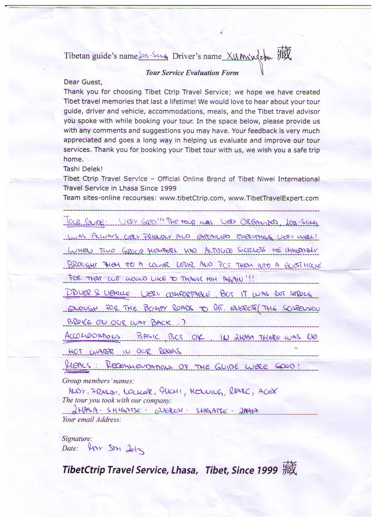 Tibet Everest Tours Review April 29 to May5 2013 (German Travel Group with Tibet Ctrip Travel Service)