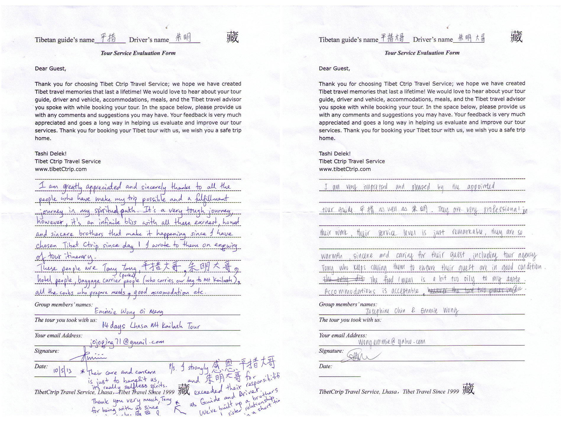 Distinguished Singaporean and Malaysian Guests fulfilled Mt. Kailash pilgrimage journey with Tibet Ctrip Travel Service. Read their handwritten Tibet Kailash Pilgrimage Tour review! Read more Kailash Manasarovar pilgrimage review here.