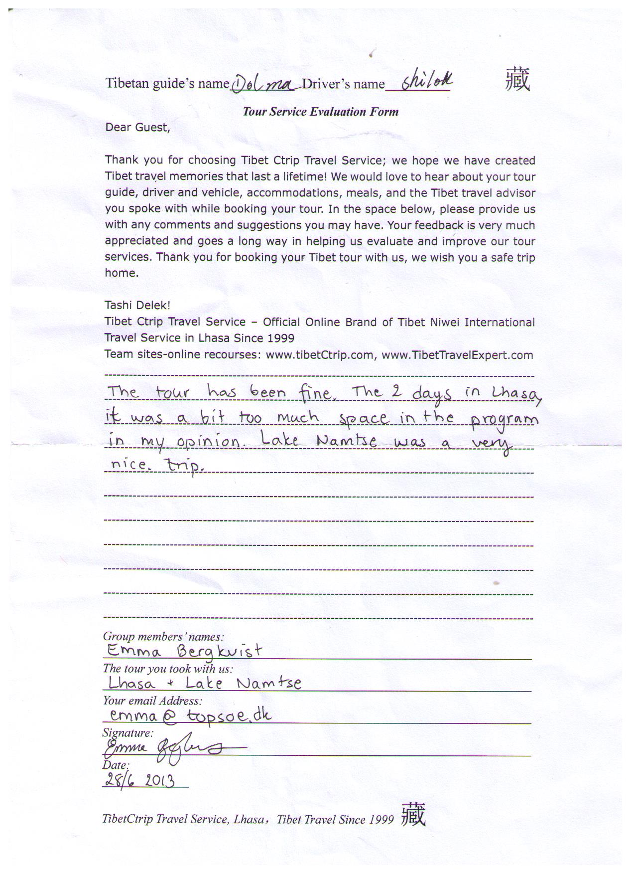 Tibet Tourists name: Emma from Sweden