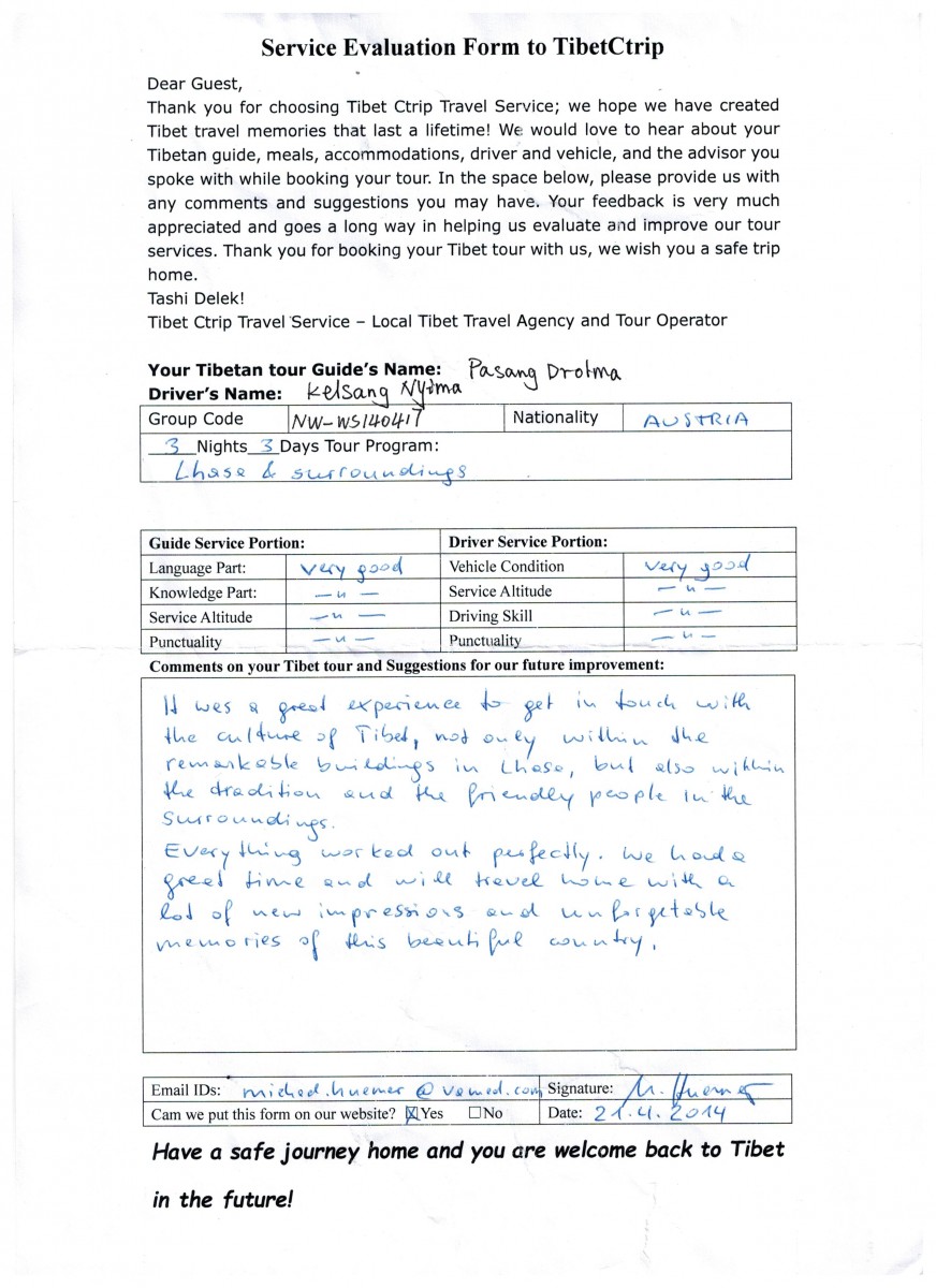 Travelers' Name: Mr. BERNHARD EDER and Mr.MICHAEL HUEMER (see handwriten Tibet Lhasa cultural tour review)