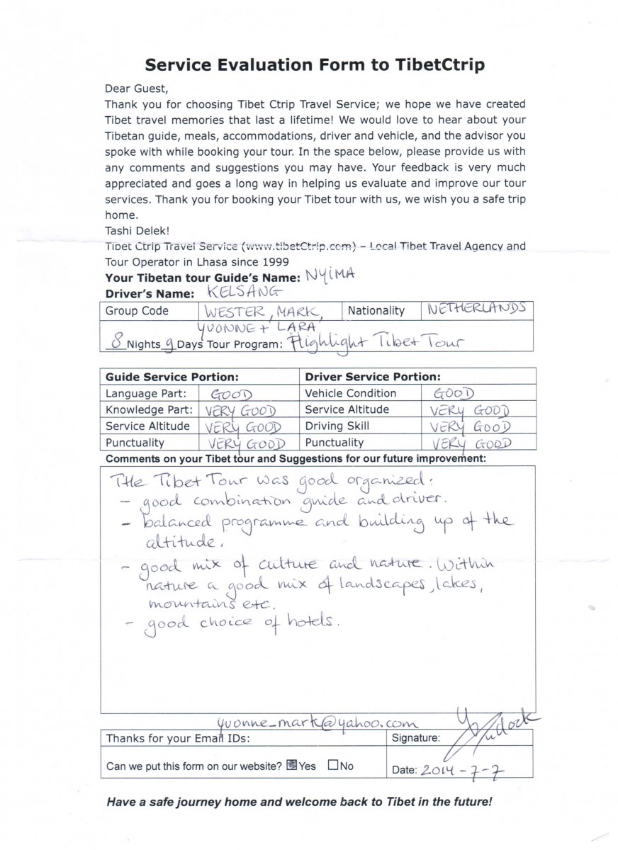 I also wanted to thank you for setting us up with the Tibet Guide Tenzin Gelie. He is of course and excellent guide, but also because we did not want to sleep at the base camp, it was perfect that he knew Tashi Dzom, and was from the area.
